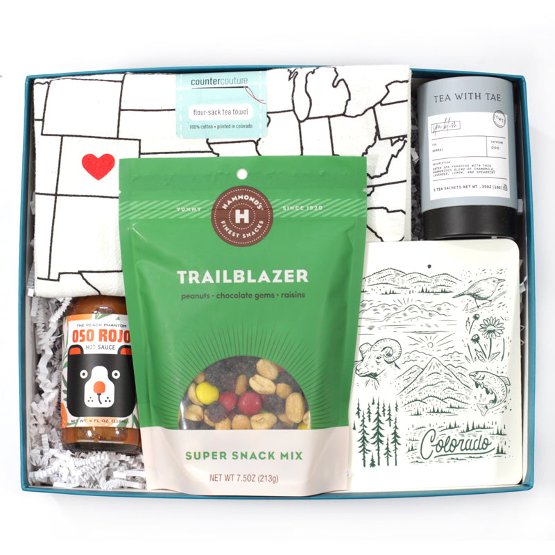 We've brought together some of our top picks from local Denver businesses! This gift box is a perfect way to send a warm welcome to Denver or share the Mile High City's flavors with friends, families, or colleagues across the nation.