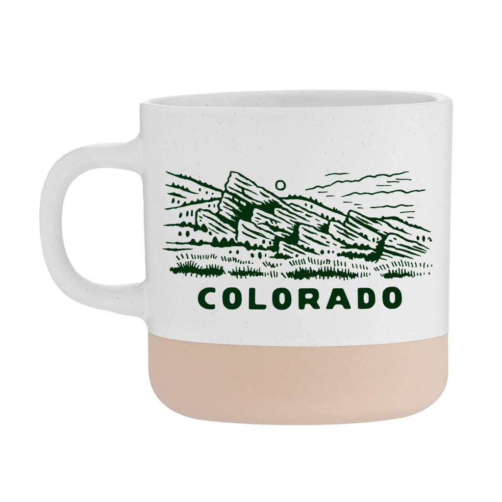 This crisp white mug features a striking dark green illustration of the legendary Boulder Flatirons, a fun way to stay connected to the beauty of the Front Range, one sip at a time.